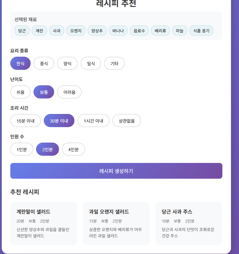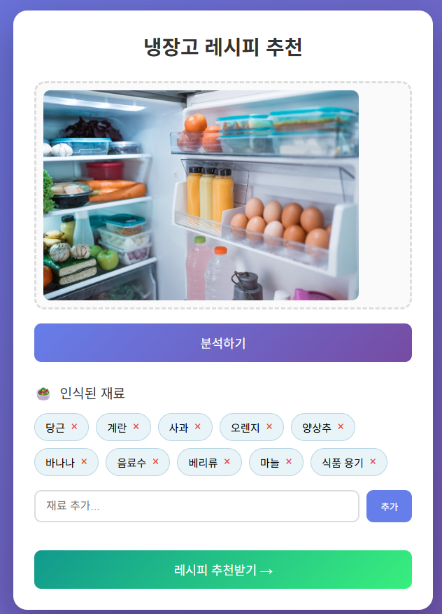 API는 프로그램과 AI모델을 이어주는 다리. 즉 애플리케이션은 사용자가 사진을 업로드할 인터페이스만 제공하고, 이미지 인식과 레시피 생성 같은 핵심 기능은 AI 모델 API가 작업하게 하는 것.