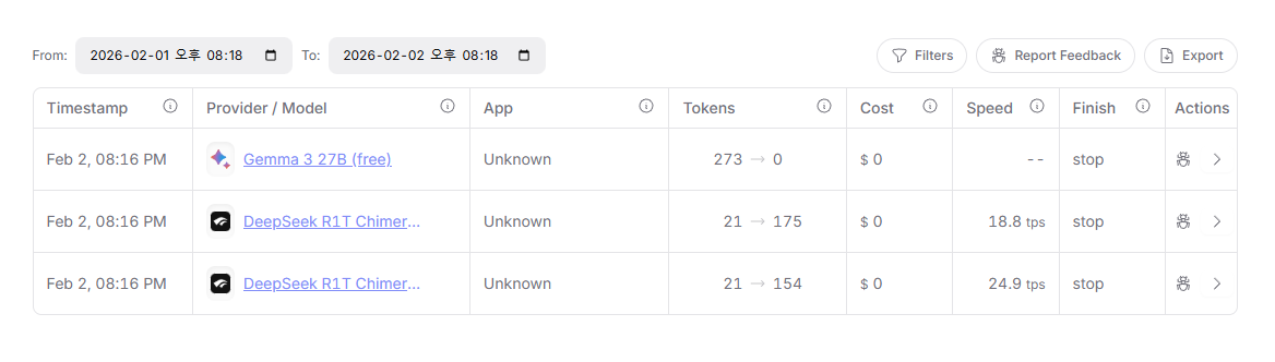 오픈라우터 : 여러 AI 모델 API를 한 곳에 모아 제공하는 API 통합 플랫폼. https://openrouter.ai/