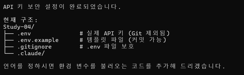 [3] "OpenRouter에서 받은 API키를 .env 파일로 저장했어. 이 키를 안전하게 사용할 수 있도록 준비해 줘."